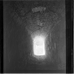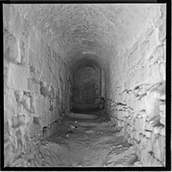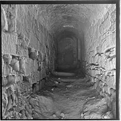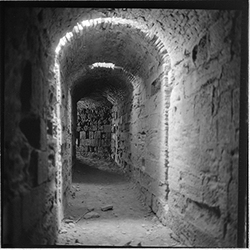 "Vista interior d’un passadís a les muralles del Turó de la Seu Vella, al peu del Baluard del Rei"