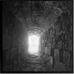"Vista interior d’un passadís a les muralles del Turó de la Seu Vella"