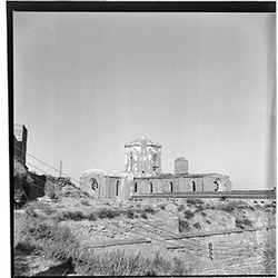 "Vista de l'ala sud del creuer de la Seu Vella, des del Baluard de la Reina"