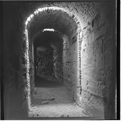 "Vista interior d’un passadís a les muralles del Turó de la Seu Vella"