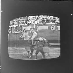 "Reproducció d’imatges de la televisió on es veu una cursa de braus "