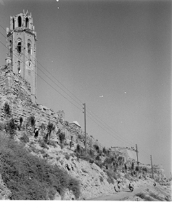 "Vista del campanar de la Seu Vella, des del camí de la Llengua de Serp"