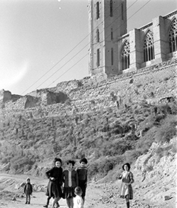 "Grup de noies joves al camí de ronda del Canyeret, al dessota del claustre"