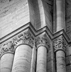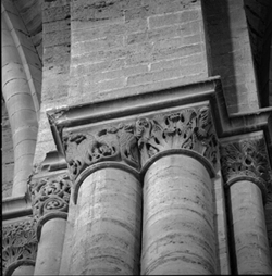 "Vista d’un capitell del creuer de la Seu Vella"