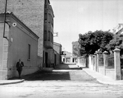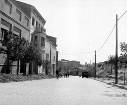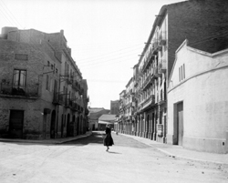 "Avinguda de Sant Ruf des del Carrer Príncep de Viana; al centre, una dona amb cistella caminant"