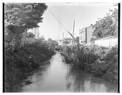 "Detall de la passarel·la sobre la Sèquia de Torres des del camí Vell d'Albatàrrec, actual Avinguda Jaume II"