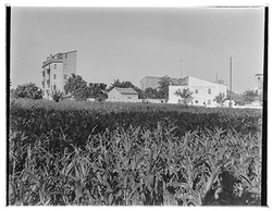 "Vista de la Sèquia de Torres des del Camí Vell d'Albatàrrec, actual Avinguda Jaume II, amb el Turó de la Seu Vella al fons"