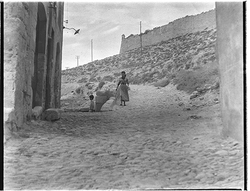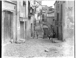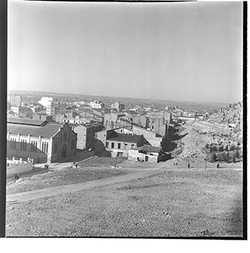 "Vista parcial des de la Seu Vella de l’antiga Costa de Rodamilans; Carrer de Sant Martí, Mercat del Pla; a la dreta, inici del Carrer Monterrey; a l’esquerra l’edifici de la Junta Provincial de Protección de Menores; Mediopensionado Santo Ángel de la Guarda"
