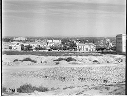 "Carrer Camp de Mart des del vessant del Turó de la Seu Vella; al fons l’Avinguda Prat de la Riba (aleshores General Mola)"