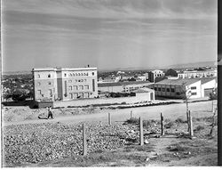 "Carrer Bisbe Galindo; al fons el Col·legi de Lestonnac (l’Ensenyança) i l’Avinguda Prat de la Riba (aleshores General Mola)"