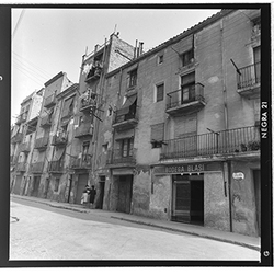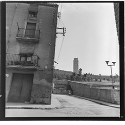 "Carrer dels Desvalls, xamfrà Sant Martí; al fons la Seu Vella"