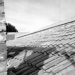"Eduardo Velasco; construcció dels nous tallers, als carrers de Santa Cecília, Eduardo Velasco i Avinguda d'Alacant; teulada; al fons, els Camps Elisis"