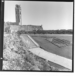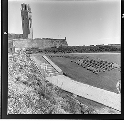 "Des de la Punta del Diamant, a les muralles els dipòsits d’aigua"