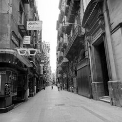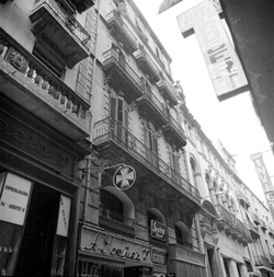 "Carrer Major. \nRètol del sastre Rabasó.\nRètol ulleres òptica.\nFaçana Casino Principal.\nRètol INVICTA."