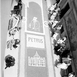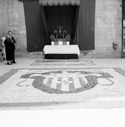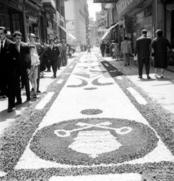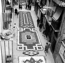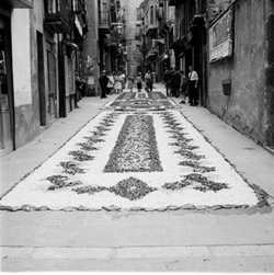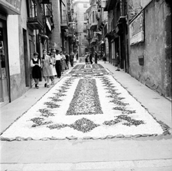 "Festivitat del Corpus Christi a Lleida; catifes de flors al Carrer Major"