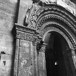 "Seu Vella; porta principal d’accés des del Claustre; detall de les arquivoltes"
