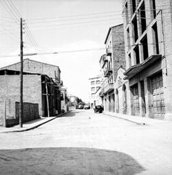 "Carrer Alfred Perenya, des del xamfrà amb el Carrer Pallars; al fons hi ha l'Avinguda Alcalde Porqueres, antiga carretera nacional núm. 230"