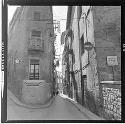 "Carrer la Palma; al fons la Plaça de Sant Llorenç"