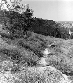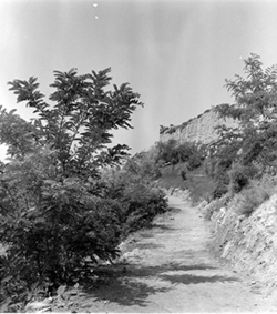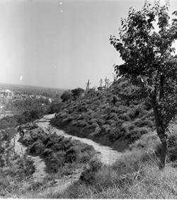 "Obres de repoblació forestal i reforma del camí de ronda al peu de les muralles, en la zona nord del turó, sobre el Camp de Mart"