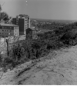 "Obres de repoblació forestal i reforma del camí de ronda al peu de les muralles, en la zona nord del turó, sobre el Camp de Mart"