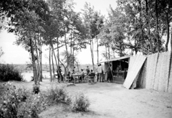 "Barri de Pardinyes; zona d’esbarjo i pícnic de la Mitjana; antic bar amb terrassa i taules on diverses persones prenen begudes; lloc conegut antigament com El Recorrido"