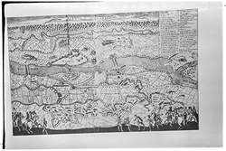 "Dibuix antic de la ciutat de Lleida, amb el pont en primer terme i la Seu Vella al fons, de l’any 1810, original de Suchet"