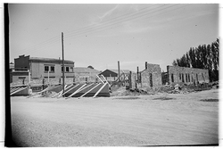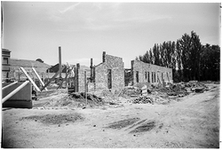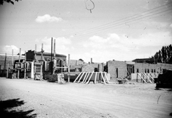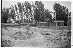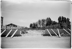 "Eduardo Velasco; construcció dels nous tallers, als carrers de Santa Cecília, Eduardo Velasco i Avinguda d'Alacant; inici i fonaments; vista des del Carrer de Eduardo Velasco; al fons els Camps Elisis"