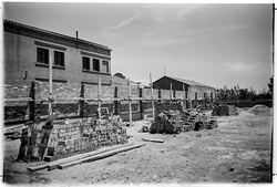 "Eduardo Velasco; construcció dels nous tallers, als carrers de Santa Cecília, Eduardo Velasco i Avinguda d'Alacant; inici i fonaments; vista des del Carrer de Santa Cecília"