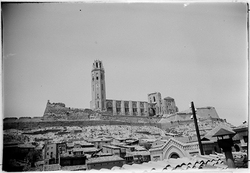 "La Seu Vella des de la terrassa d’un edifici de la Plaça de Sant Joan"