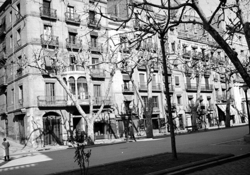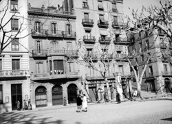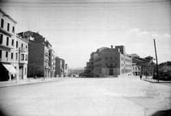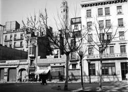 "Avinguda Prat de la Riba (aleshores General Mola); a la dreta l'inici del Carrer Salmeron, amb l'edifici de l'Ambulatori de la Seguretat Social"