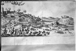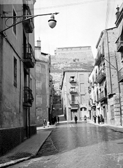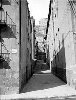 "Carrer de la Costa de la Magdalena, des del Carrer de la Magdalena; al fons, les muralles del Turó de la Seu Vella"
