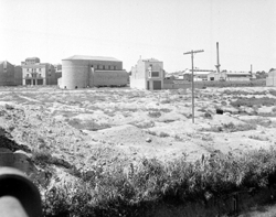 "Zona de Balàfia; des del que actualment seria la Plaça de Europa, vista de al costat de la carretera nacional 230, actual Avinguda Alcalde Porqueres; a la dreta els blocs Franco de Gaminde, i començament del Carrer del Vallès"