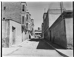 "Carrer Bisbe Torres des de l'Avinguda de Catalunya; a la dreta l'edifici de les Germanetes dels Pobres; al fons el Carrer Governador Montcada i el campanar de Sant Llorenç"