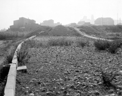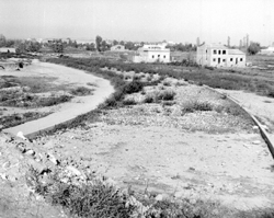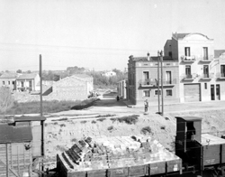 "Zona que en l’actualitat seria el Segon Passeig de Ronda, sobre la via del ferrocarril propera a l’estació, vist des d’una zona propera al Carrer Comtes d’Urgell"