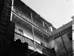 "Galeria interior d’una casa del Carrer del Palau, amb pilars de fusta"