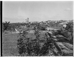 "Edificacions properes al Turó de Gardeny; possiblement al voltant del Carrer Acadèmia, o zona de la Mariola; al fons s'aprecia la Seu Vella"