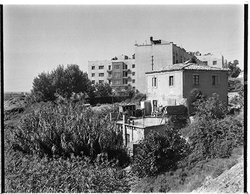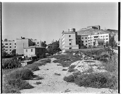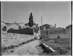"Voltants dels Blocs Militars, al peu del Turó de Gardeny, entre l'Avinguda de Madrid i el Carrer Isaac Albéniz; al fons el Castell"