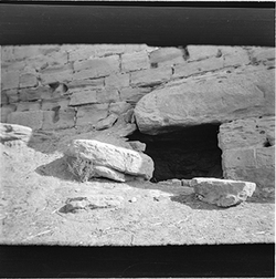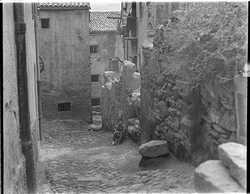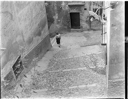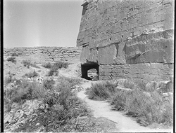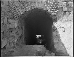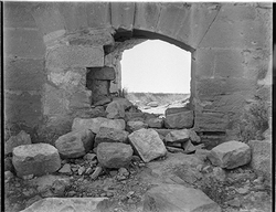 "Vista interior d’un passadís a les muralles del Turó de la Seu Vella"