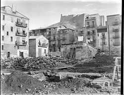 "Fonaments de l’antic Estudi general de Lleida, entre els carrers Pla dels Gramàtics i de la Universitat; al fons el Turó amb les muralles de la Seu Vella"