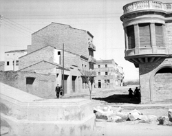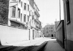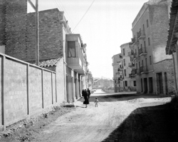 "Plaça de les Missions; inici del Carrer Magí Morera; en primer terme les escales del Santuari de Santa Teresita (Teresina) de Lleida"