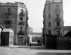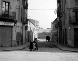 "Carrer de la Magdalena i inici del Carrer Igualada; en primer terme es veuen una casetes de l’antic mercat de la Magdalena"