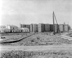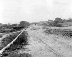 "Zona de Balàfia propera al Passeig de Ronda i a la Plaça d'Europa; al fons el veu l’edifici de l’Hospital Provincial de Santa Maria"