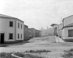 "Zona de Balàfia; des del Carrer del Priorat, Carrer de Mossèn Pelegrí; al fons el Turó de la Seu Vella"