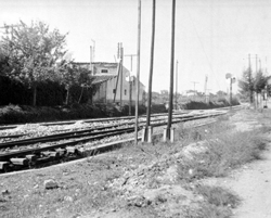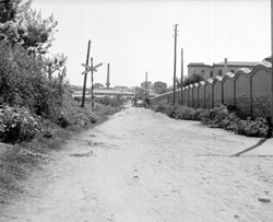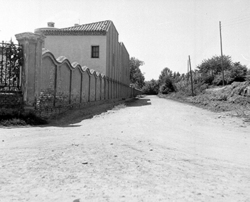 "Tanca de l’Hospital Provincial de Santa Maria; el camí de Montcada, vist des de la carretera nacional 240, actual Avinguda Alcalde Rovira Roure"