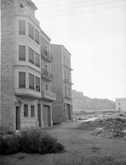 "Carrer Onofre Cerveró, des del Carrer Bonaire; al fons el Turó de la Seu Vella"