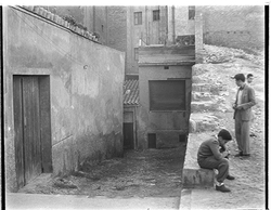 "Xamfrà Carrer Major i Carrer Cavallers; capella del Peu del Romeu a la dreta"