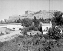 "Voltants de l'Institut de Batxillerat Màrius Torres; antic Instituto Nacional de Enseñanza Media ; al fons el Castell dels Templers de Santa Maria de Gardeny"