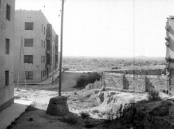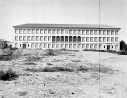 "Voltants de l'Institut de Batxillerat Màrius Torres; antic Instituto Nacional de Enseñanza Media ; blocs militars al xamfrà amb Cots y Gayan; carretera de Saragossa"