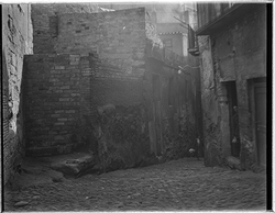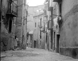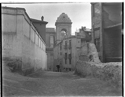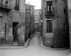 "Inici del Carrer del Joglar Segalà des del Carrer del Roser; a la dreta les ruïnes del Convent de l’Ensenyança"