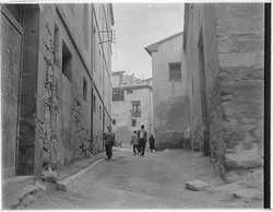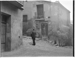 "Pujada des del Carrer de la Plateria al Carrer Ballester, per la qual puja un vianant"